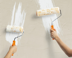 - Чтобы сделать основу под базовое покрытие, состав разводится с водой 1:2 (одна порция краски и две порции воды). Раствор получается жидким и оставляет подтеки. Наносить его рекомендуется ворсистым валиком.
